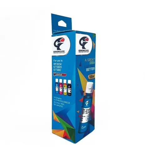 Use la tinta GIHON CLICK GT-51 en impresoras H P GT 5810 / GT 5820. Las tintas GIHonClic1 vienen empacadas al vacío.
